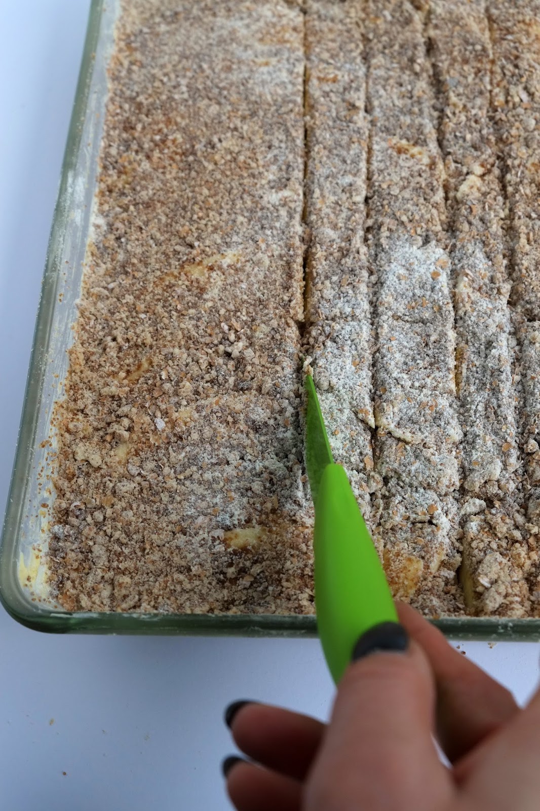 *Nu een rechthoekige schaal goed insmeren met boter.