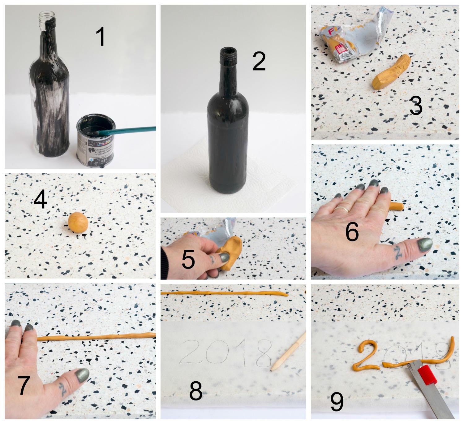 Om het iets persoonlijk en feestelijk te maken, hebben we van lege flessen een super leuke kandelaar gemaakt met het getal 2018 van klei.