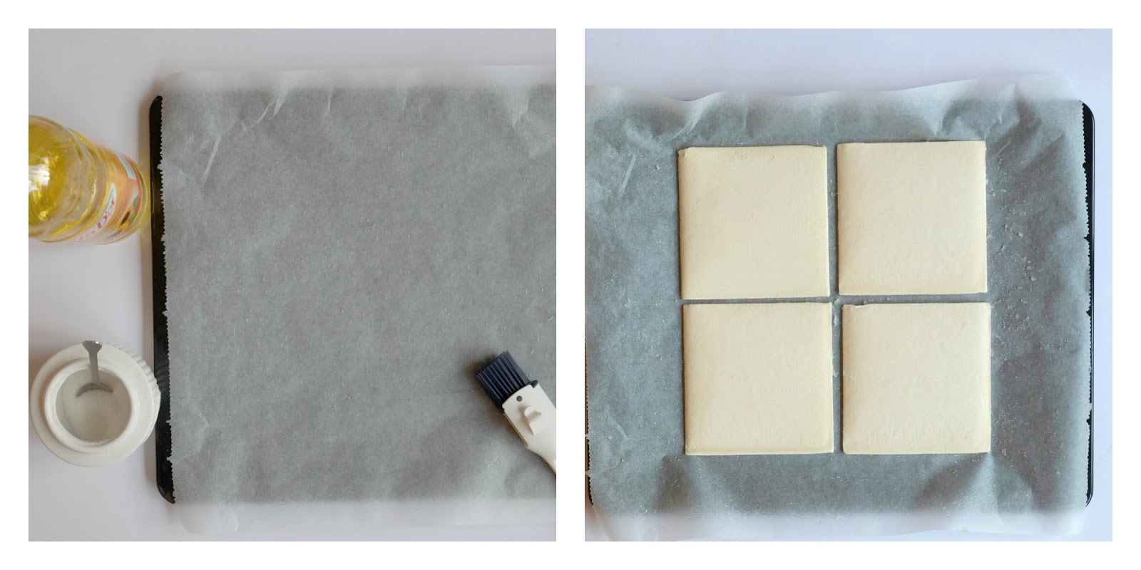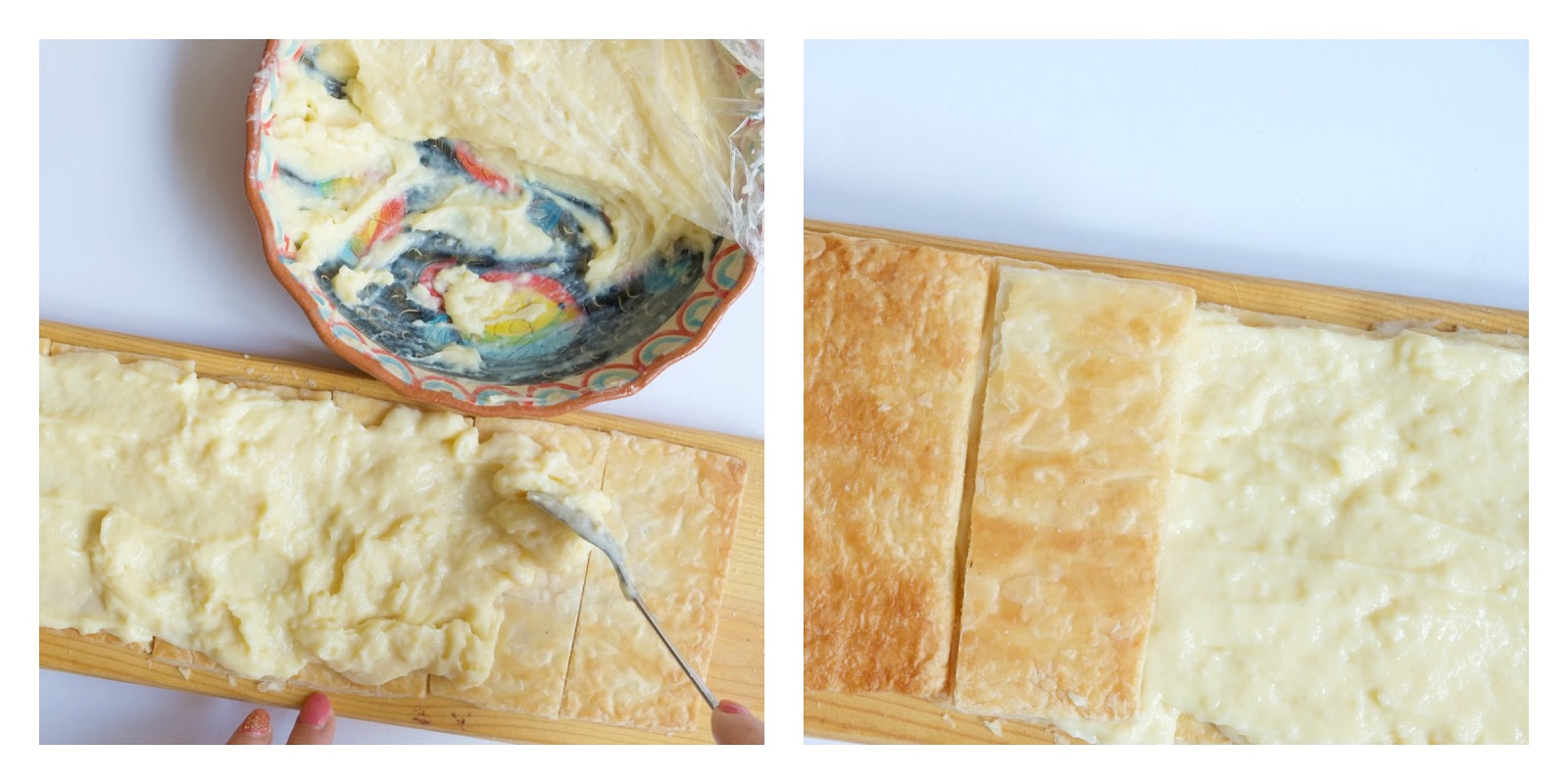 *Moet echt afgekoeld zijn voordat je het gaat insmeren op de bladerdeeg stukjes.