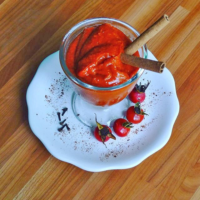 Het maken van een pure, dikkere compote is vaak ook de start van een ander gerecht. Dat maakt het extra leuk om te doen. Nou moet ik wel eerlijk bekennen dat die rozenbottels (mooie rood-oranje grote bollen van wilde rozen) wel een klusje zijn door alle pitjes die ik er vooraf uit verwijder.