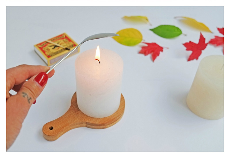 Verwarm met een andere kaars de binnenkant van een lepel voor ongeveer 10 sec.( let op niet te warm).