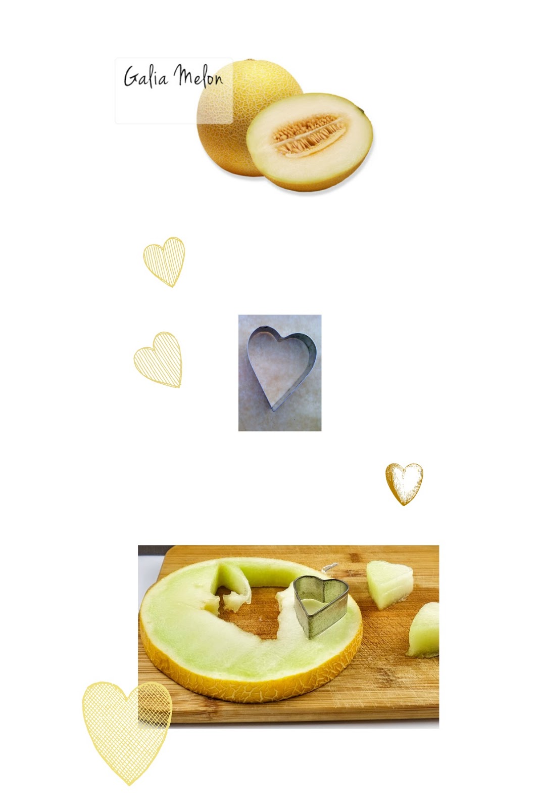 Begin met het kleine vormpje door de meloen te drukken om de meloen hartjes te maken (4 stuks).