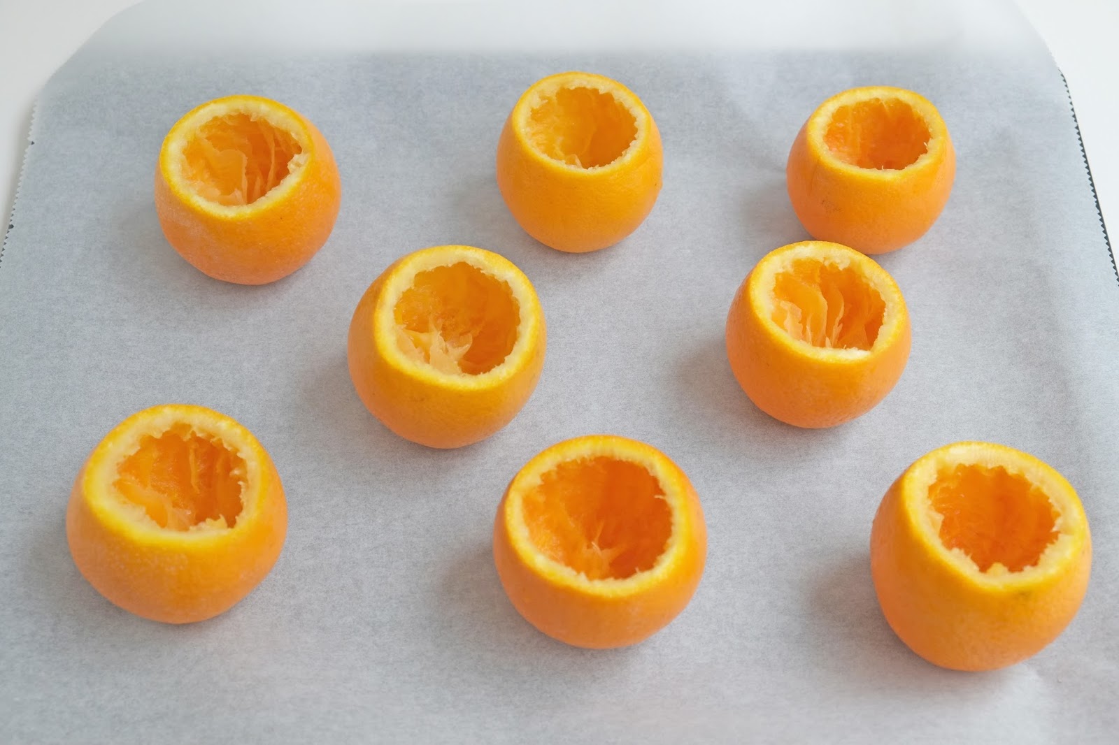 *Leg de sinaasappels op het bakpapier.