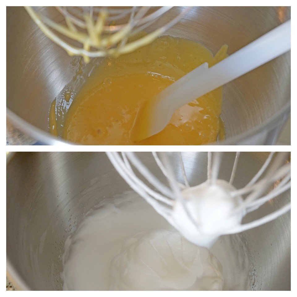 *In een andere schaal ga je het eiwit kloppen met het restant suiker (2 lepels), totdat het slagroom wordt (stevig).